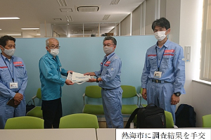 砂防班が取りまとめた被災状況調査結果を熱海市及び熱海土木事務所へ説明し、報告書として提出しました。