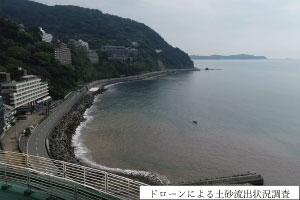 熱海市伊豆山で発生した土石流の応急復旧に向け、作業機械の搬入路等を検討するための現地調査を実施するとともに、ドローンによる逢初川の被災状況調査結果を熱海市へ説明しました。