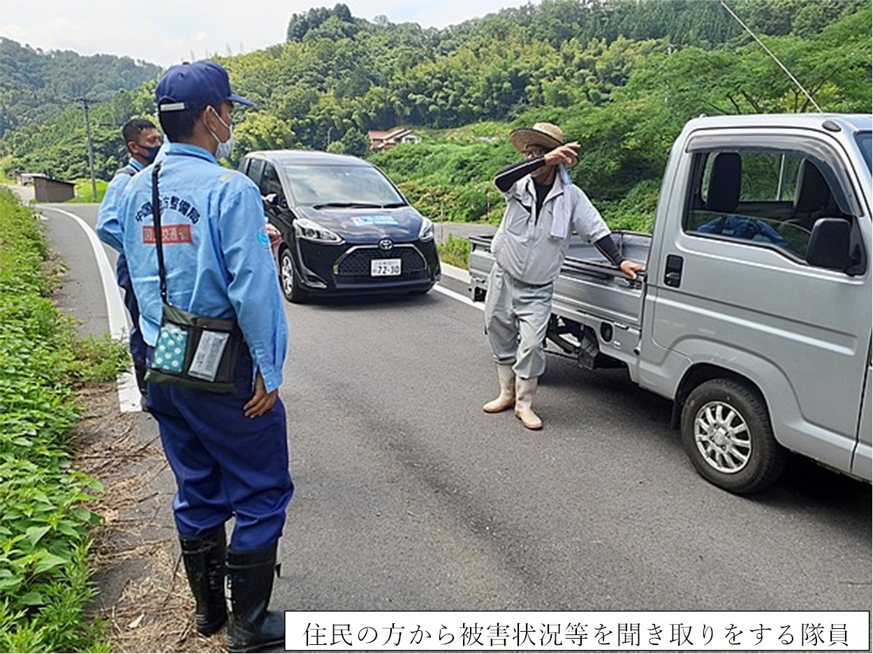 ※写真を利用される場合は、「国土交通省TEC-FORCE(テックフォース)撮影」のクレジットを挿入ください[2021年7月8日]中国地方では、リエゾンによる情報収集、排水ポンプ車を派遣